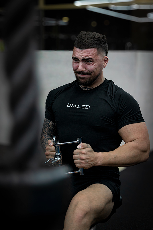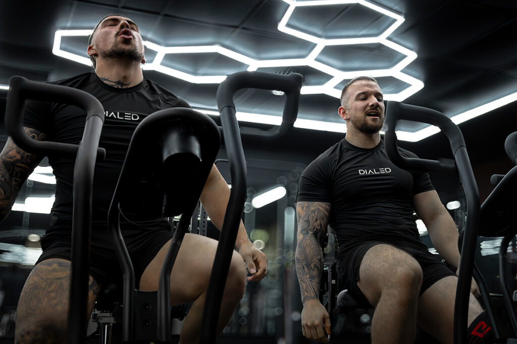 The first photoshoot took place in a controlled studio environment with a white backdrop. This setting was ideal for producing clean, product-centric images that could easily be used on the brand’s website for e-commerce purposes. The four male models selected were muscular, in line with DIALED’s target audience of gym enthusiasts, and each was photographed from multiple angles: front, side, back, and 45 degrees.